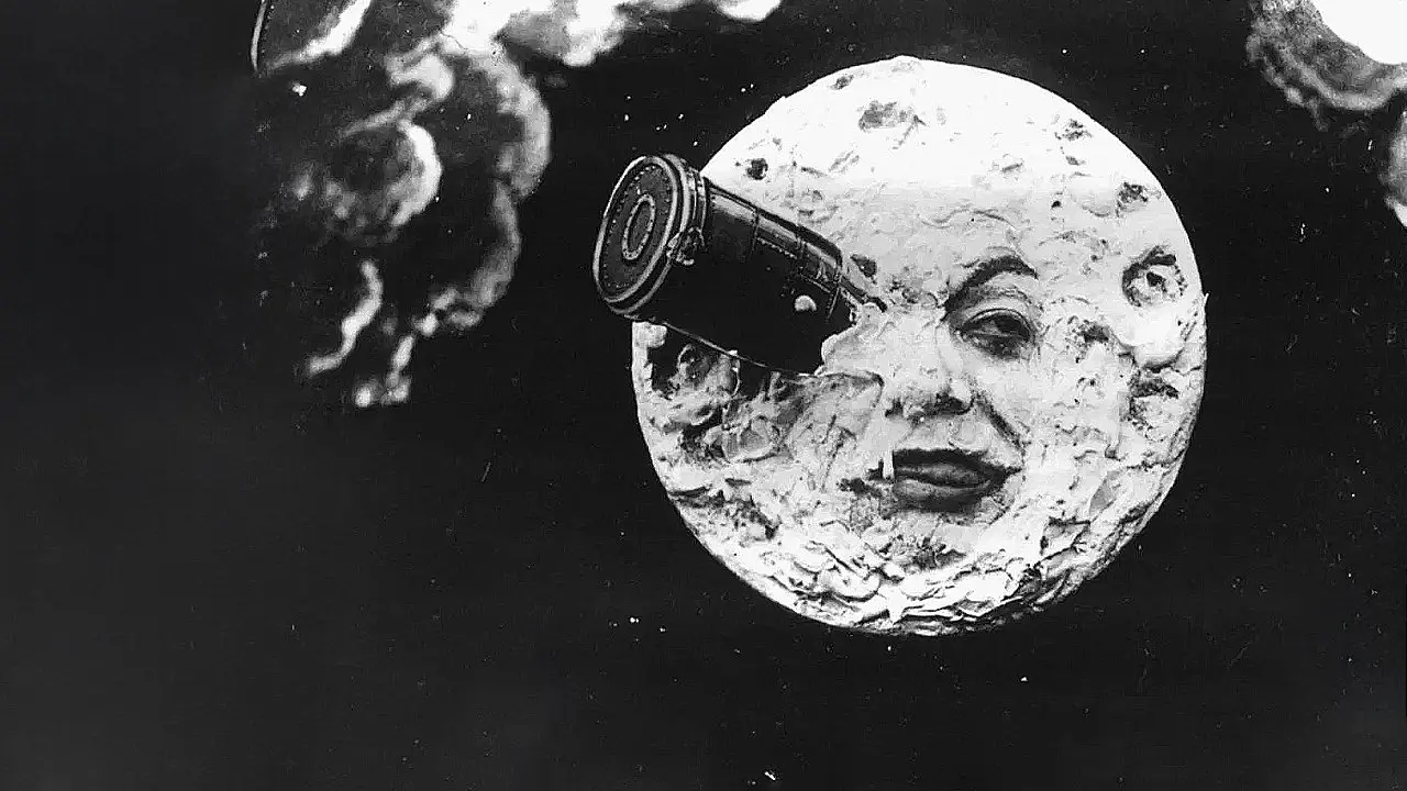 Вчений робить в Академії доповідь про можливість польоту на Місяць. Після бурхливих дискусій вирішено відправити на Місяць експедицію, для якої будується космічний корабель у вигляді порожнього снаряда, який запускається в космос пострілом з величезної гармати. Снаряд падає на Місяць. Академіки виходять на поверхню Місяця, любуються видом на Землю й лягають спати. Ранком вони йдуть досліджувати знайдену печеру, де зустрічають стрибаючих селенітів (у фільмі їх зображували професійні акробати). Розправившись із селенітами за допомогою парасольок, учені вирішують повернутися на Землю, сідають у снаряд, після чого останній академік зіштовхує снаряд із краю Місяця й сам стрибає слідом. Снаряд падає в океан і благополучно допливає до гавані. Прибулих мандрівників з пошаною зустрічають співвітчизники.